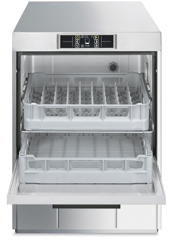 Smeg UD522D — посудомоечная машина с фронтальной загрузкой из серии «TOPLINE». Модель имеет электронную панель управления и снабжена дозаторами моющего и ополаскивающего средств с перистальтическим насосом. Система ополаскивания HTR (атмосферный бойлер + помпа ополаскивания) снижает потребление электроэнергии и ускоряет высыхание посуды.