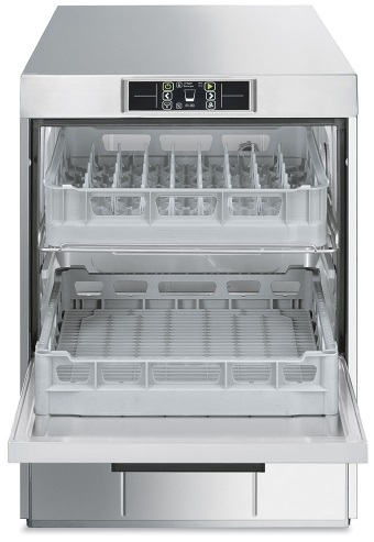 Smeg UD522DS — профессиональная модель с фронтальной загрузкой для мойки 2-х кассет 500 х 500 мм одновременно. Устройство имеет электронную панель управления и снабжено водоумягчителем для защиты нагревательного элемента от накипи и известкового налета. Моечный бак машины с двойными стенками и закругленными углами, конструкция которых препятствует скоплению загрязнений, характеризуется высокой прочностью и прост в уходе.