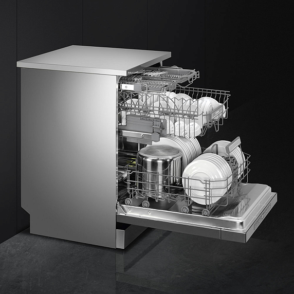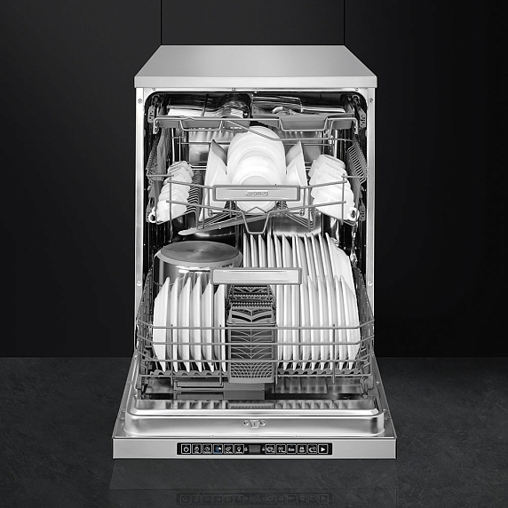 Опция FlexiTabs позволяет использовать средства «3-в-1», что максимально упрощает эксплуатацию. Некоторые модели посудомоечных машин Smeg автоматически распознают, какой тип средства используется и подстраивают программу под него.