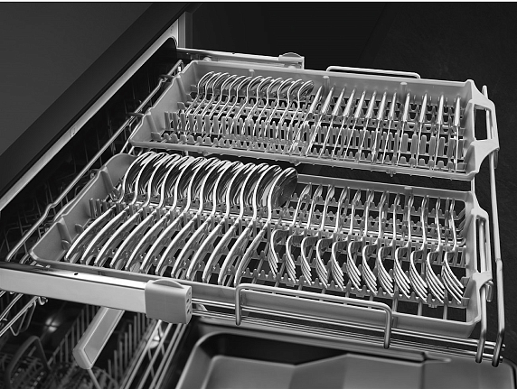 Опция FlexiTabs позволяет использовать средства «3-в-1», что максимально упрощает эксплуатацию. Некоторые модели посудомоечных машин Smeg автоматически распознают, какой тип средства используется и подстраивают программу под него.