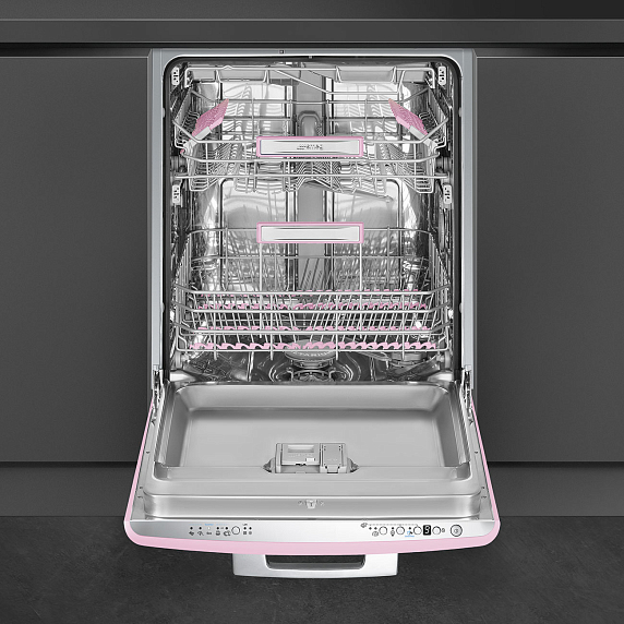 Посудомоечная машина Smeg ST2FABPK2 выполнена в розовом цвете и прекрасно дополнит интерьер в стиле ретро вместе с другой техникой из серии 50-х годов. Загрузки в 13 комплектов посуды достаточно даже для большой семьи. 5 стандартных и 5 режимов QuickTime гарантируют качественную мойку любых материалов различной степени загрязненности.