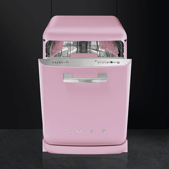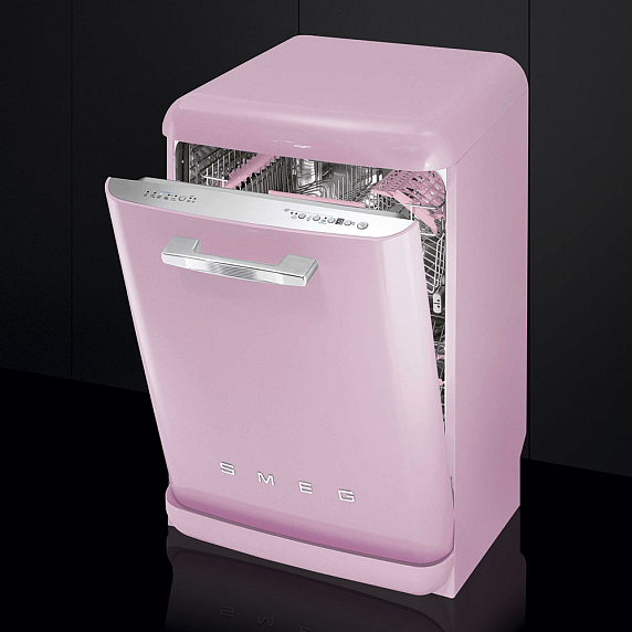 Smeg LVFABPK — отдельностоящая посудомоечная машина в стиле 50-х годов. Модель поддерживает функцию половинной загрузки и снабжена системой защиты от протечек Aquastop. Автоматический датчик Aquatest позволяет оптимизировать все основные параметры мойки: время, температуру и расход воды. Для переноса времени начала выполнения цикла предусмотрен таймер отсрочки включения.