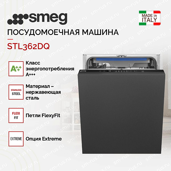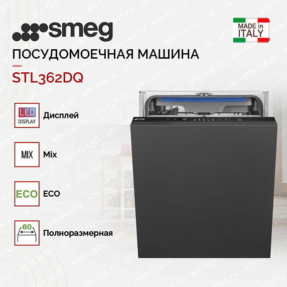 Встраиваемая посудомоечная машина SMEG STL362DQ — это высокотехнологичное устройство, созданное для обеспечения максимального комфорта и эффективности в уборке кухни. Эта модель, произведенная в Польше, относится к основной линейке бренда SMEG и обладает элегантным черным дизайном, который идеально впишется в любой интерьер. Одной из особенностей этого устройства является его вместительность: оно способно загрузить до 14 комплектов посуды, что делает его идеальным для больших семей или частых вечеринок. Панель управления, выполненная в том же черном цвете, оснащена сенсорными кнопками, которые обеспечивают простоту и удобство использования.