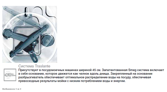 Орбитальная система мойки используется в посудомоечных машинах Smeg шириной 60 и 90 см. Благодаря ее строению посуда качественно промывается во всех корзинах, что гарантирует комфорт эксплуатации.