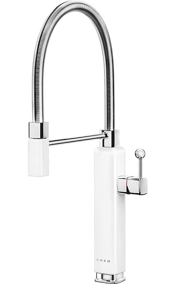 Однорычажный смеситель SMEG MDF50WH в универсальном белом цвете отличается стильным дизайном. Модель имеет функцию ESC, которая поможет снизить расход воды.