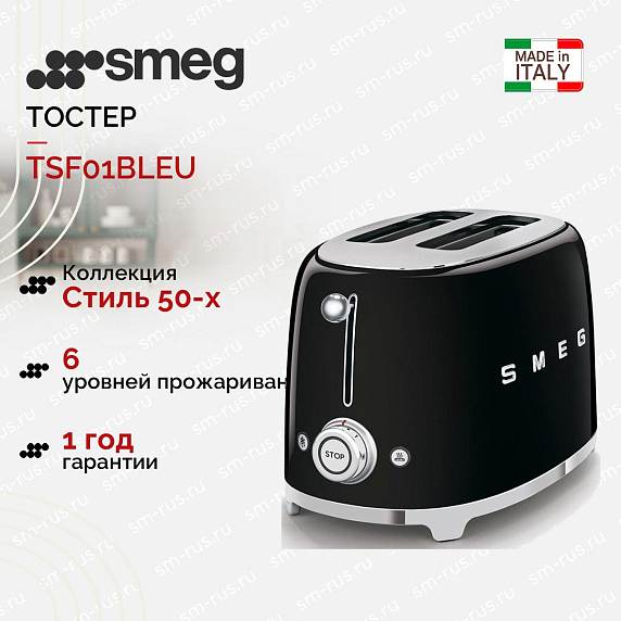 Тостер SMEG TSF01BLEU в изысканном черном цвете станет настоящим украшением кухни, оформленной в стилистике 50-х годов. Это время романтики и оптимизма, которое до сих пор будоражит умы людей