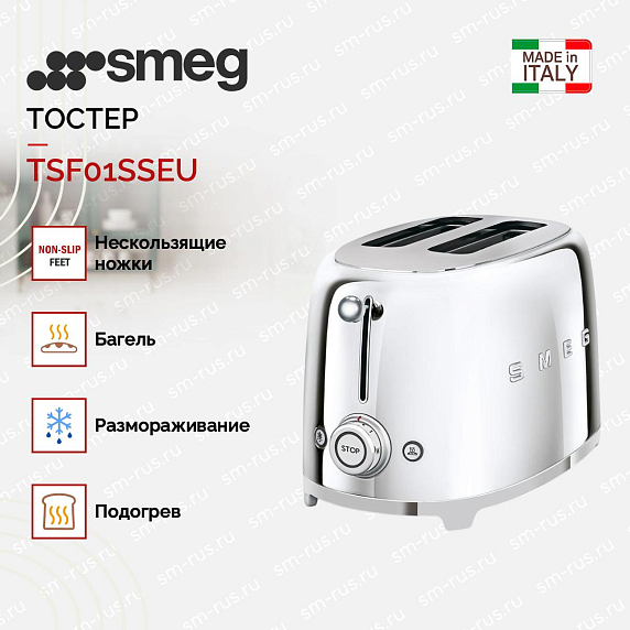 Тостер SMEG TSF01SSEU отличается эффектным внешним видом и широким функционалом. Он выполнен в стилистике 50-х годов и идеально впишется в интерьер этого стиля, оформленный при помощи других приборов коллекции