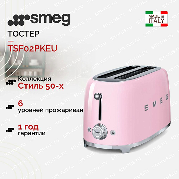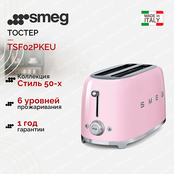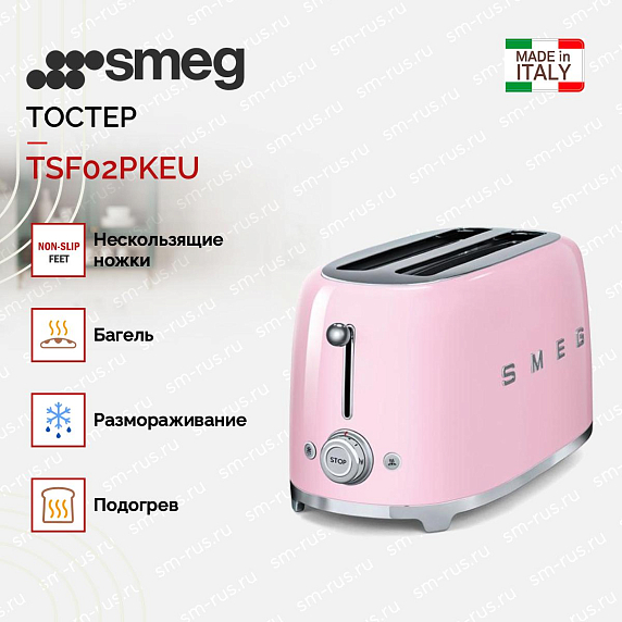 Тостер SMEG TSF02PKEU — нежная и стильная модель, выполненная в пастельно-розовом цвете. Несмотря на свою кажущуюся хрупкость он обладает высоким запасом прочности и широким функционалом