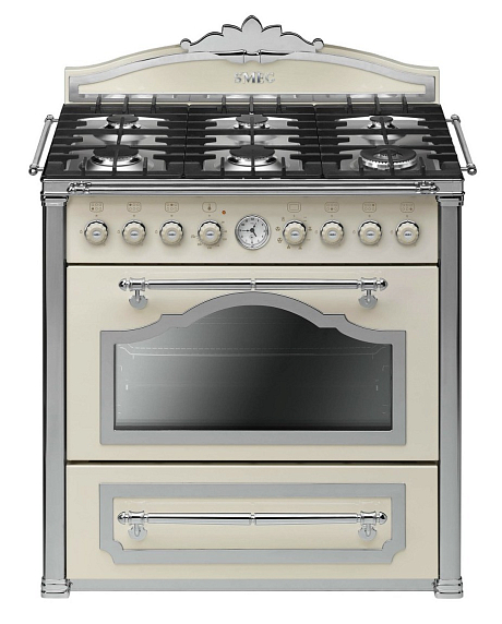 Варочный центр SMEG CC9GPX выполнен в стиле дизайнерской линейки Cortina и представлен в элегантном кремовом цвете. Серебристая фурнитура органично дополняет внешний вид. Поворотные переключатели и автоматический электроподжиг обеспечивают комфортное управление прибором. Конфорка повышенной мощности позволяет готовить быстрее, сохраняя все витамины и полезные свойства продуктов. Режим конвекции создает равномерную термическую обработку блюда. Гриль помогает достичь аппетитной хрустящей корочки при запекании.