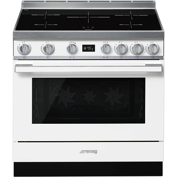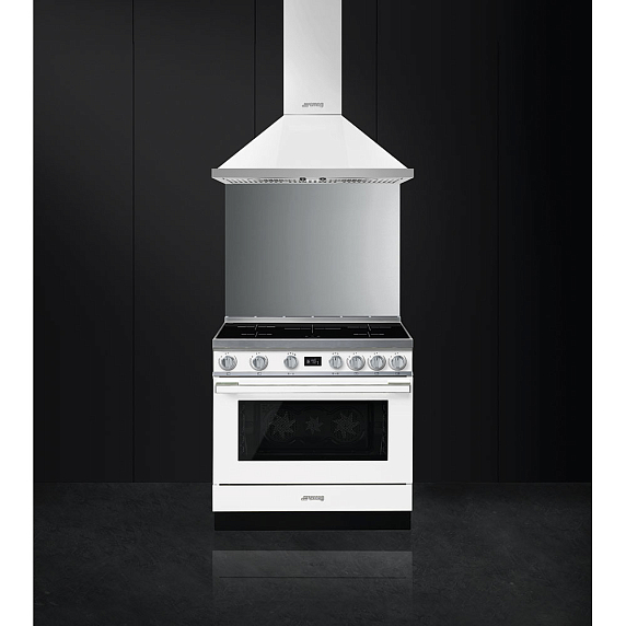 Варочный центр SMEG CPF9IPWH выполнен в белом цвете и оснащен широким функционалом: 20 автоматических программ позволят подобрать оптимальные условия для приготовления любых блюд — от мясного рулета до овощей и риса; поворотные элементы управления помогут быстро настроить режимы готовки, а на LCD-дисплее отображаются процессы, происходящие в духовом шкафу. Функция Booster временно увеличит мощность одной из 5 индукционных конфорок, например, для быстрого закипания большого объема воды. Система плавного закрытия дверцы SoftClose увеличивает не только комфорт, но и долговечность использования, потому что механизм меньше изнашивается.