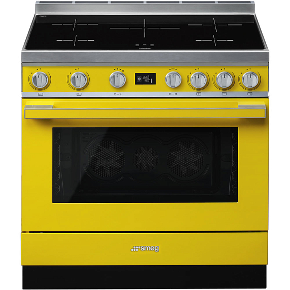 Варочный центр SMEG CPF9IPYW выполнен в желтом цвете и оснащен широким функционалом: с помощью 5 индукционных зон разной мощности и размера и 10 режимов нагрева можно подобрать оптимальные условия приготовления для любых продуктов; пиролитическая система очистки делает уход за камерой легким и быстрым. Управление с помощью поворотных переключателей облегчает настройку прибора и увеличивает комфорт эксплуатации — можно удобно выбрать программу или настроить температуру.