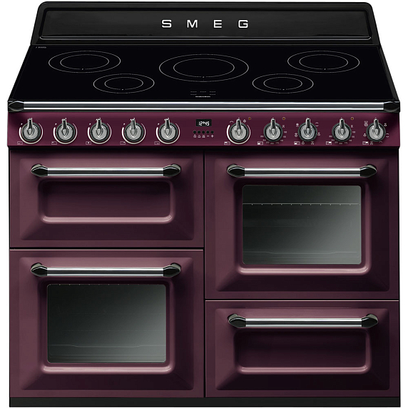 Варочный центр SMEG TR4110IRW представлен в цвете «бордо». Модель комплектуется 5 индукционными зонами нагрева и 3 духовыми шкафами с различными режимами, что позволяет готовить разнообразные блюда — от открытых пирогов до мяса на гриле, одновременно в разных духовках. Варочная панель изготовлена из стеклокерамики, которая отличается устойчивостью к температурным перепадам и поэтому долговечна. Тангенциальное охлаждение и тройное остекление дверей исключают возможность ожогов и гарантируют безопасность при эксплуатации устройства.