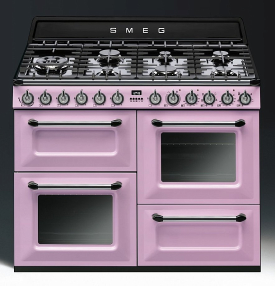 Мультифункциональный варочный центр SMEG TR4110RO выполнен в необычном розовом цвете и оснащен тремя духовыми шкафами. Благодаря стильному дизайну модель станет украшением любого интерьера. Электромеханическая система управления с поворотными переключателями обеспечивает комфортное пользование прибором.