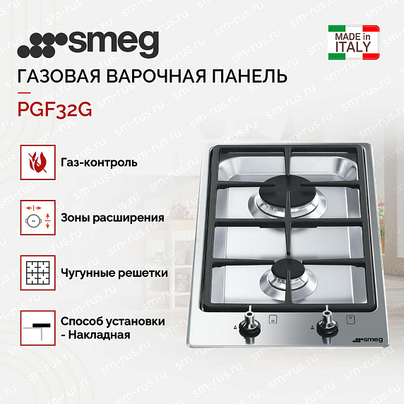 Газовая варочная панель SMEG PGF32G представлена в цвете нержавеющей стали и оснащена двумя газовыми конфорками различного размера и мощности. Поворотные переключатели обеспечивают комфортное пользование прибором.