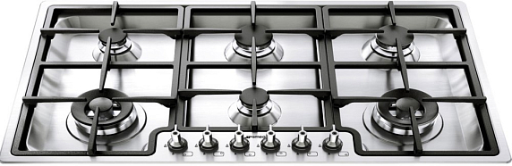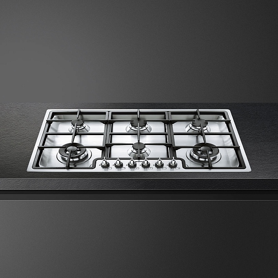 Варочная панель SMEG PGF96 итальянского производства оснащена 6 горелками. Все они регулируются поворотными переключателями из нержавеющей стали. Чугунные решетки — стильное и долговечное решение для кухни. Система газ-контроль обеспечит безопасное использование.
