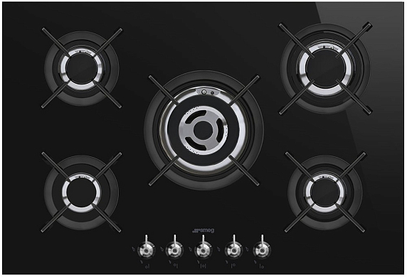 Варочная панель SMEG PV375CN выполнена из черной стеклокерамики. Чугунные решетки долговечны и не теряют эстетичного внешнего вида. Поворотные регуляторы позволяют плавно менять уровень нагрева При затухании пламени подача газа будет автоматически прекращена.