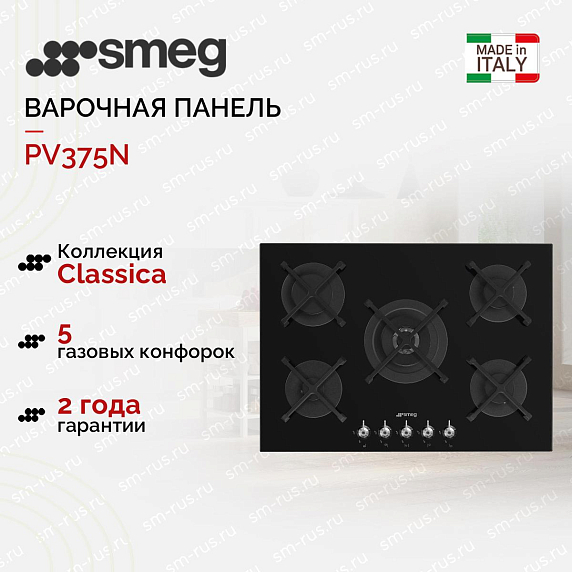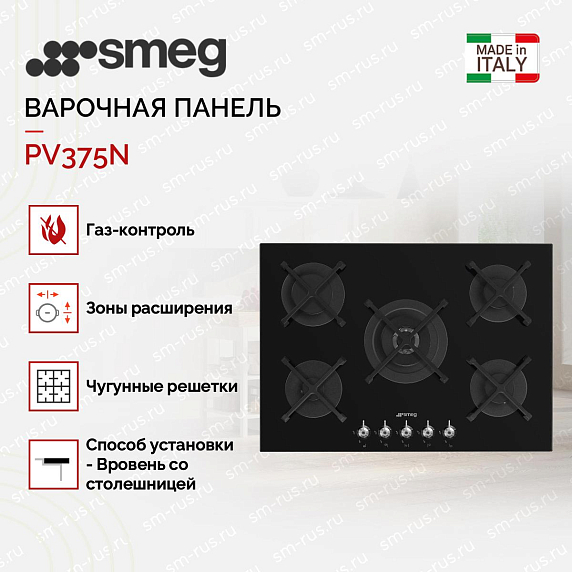 Варочная газовая панель Smeg PV375N выполнена из черного закаленного стекла с прямым краем. Поворотные переключатели цвета нержавеющей стали удобны в эксплуатации. При помощи автоматического электроподжига можно зажечь конфорку в одно касания без риска обжечься. Газ-контроль не допустит утечки газа и убережет ваш дом от пожара.