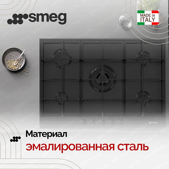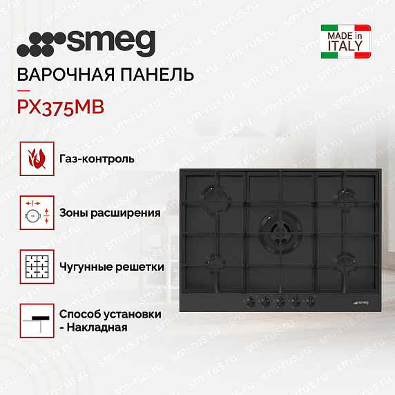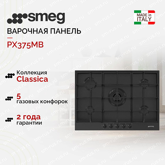 Газовая варочная панель SMEG PX375MB оснащена пятью конфорками разного диаметра, которые зажигаются при помощи электроподжига, не используя спички. Благодаря устойчивым чугунным решеткам можно не опасаться, что посуда перевернется. Газ-контроль обезопасит ваш дом, так как не допустит утечки газа.