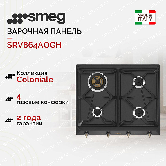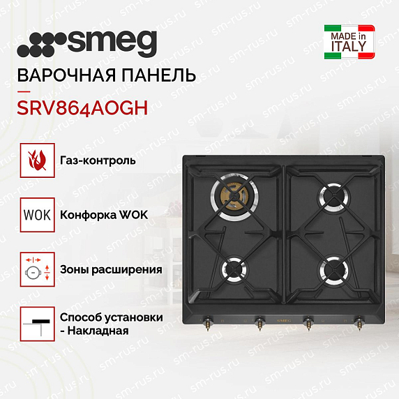 Варочная панель SMEG SRV864AOGH — это надежность, практичность, безопасность и мощность.