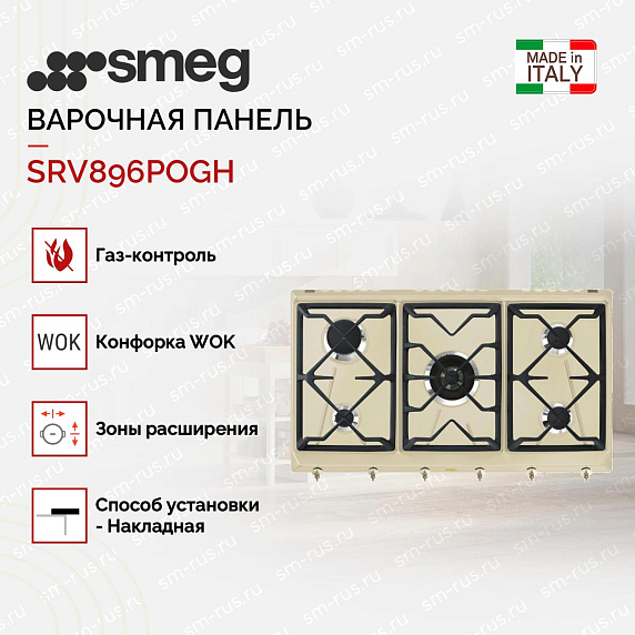 Газовая варочная панель из коллекции Coloniale отличается элегантным дизайном. 5 конфорок разной мощности и диаметра позволят приготовить много разнообразных блюд. центральная конфорка с двумя рядами пламени обеспечит сверхбыстрый и равномерный прогрев посуды, в том числе WOK.