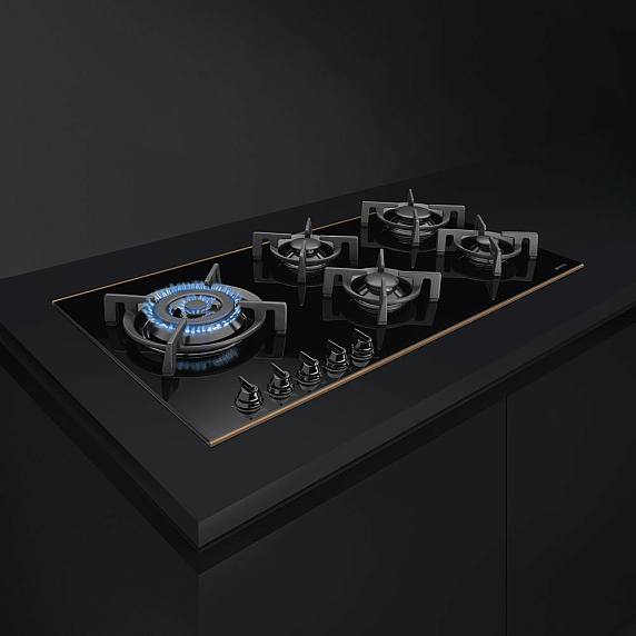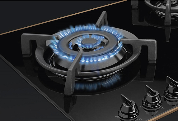 Я просто влюблена в эту варочную панель! Она стала главным украшением моей кухни. Черный цвет, медный профиль и чугунные решетки выглядят очень стильно и современно! Газовые горелки работают превосходно, а стеклокерамическая панель очень легко чистится. Плюс, мне очень понравилось, что есть автоматический электроподжиг и защита от перегрева!