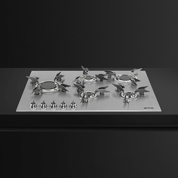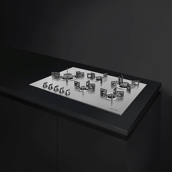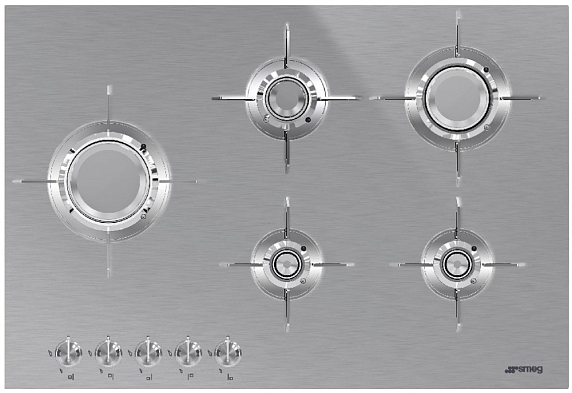 Варочная панель SMEG PXL675L собрана из нержавеющей стали и оборудована 5 конфорками. Одна из них — повышенной мощности. Горелки сделаны по технологии ламинарного вертикального пламени Bladе, что позволяет избежать рассеивания тепла в стороны. При прекращении горения газ будет перекрыт.