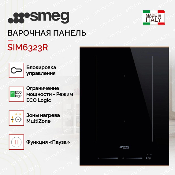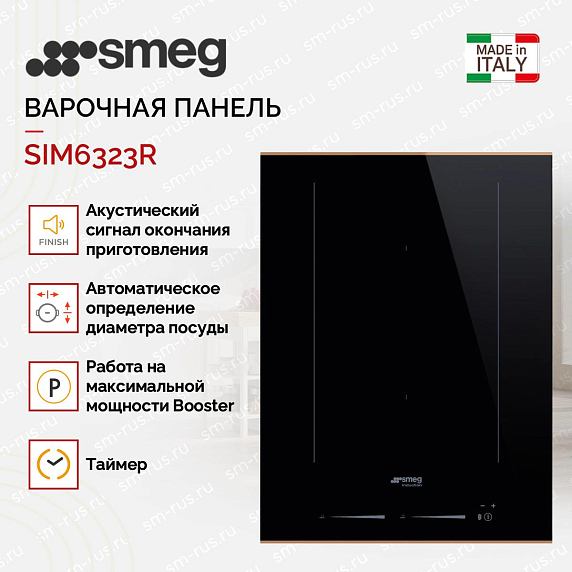 Варочная панель Smeg SIM6323R имеет 2 индукционные конфорки, которые обладают 9 уровнями нагрева. Функция PowerBoost увеличит на короткое время мощность, что даст возможность быстро разогреть блюдо или вскипятить воду. Зона MultiZone объединит конфорки в одну, что очень удобно, если вы используете посуду нестандартного диаметра.