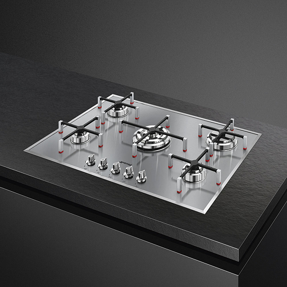 Варочная панель SMEG PX7502 оснащена 5 конфорками из нержавеющей стали. Она оборудована системой, прерывающей подачу газа в случае затухания пламени.Чугунные решетки эстетично выглядят и сохраняют внешний вид долгое время.