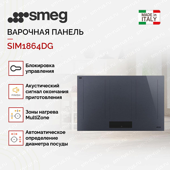Варочная панель Смег SIM1864DG — это эталон современного дизайна и технологического совершенства. Мы являемся официальным дилером бренда, что гарантирует вам приобретение оригинальной продукции с полным комплектом документов, официальной заводской гарантией и профессиональной сервисной поддержкой.