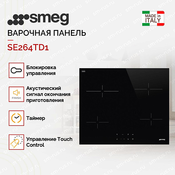 Smeg SE264TD1 — это стильная и функциональная варочная панель, которая станет идеальным дополнением для вашей кухни. Благодаря своей стеклокерамической поверхности, она не только прекрасно выглядит, но и очень проста в уходе. Одно из главных преимуществ данной модели — это наличие индикации остаточного тепла. Эта функция поможет вам избежать ожогов и повреждений посуды, так как она информирует о том, что зона приготовления ещё не остыла.