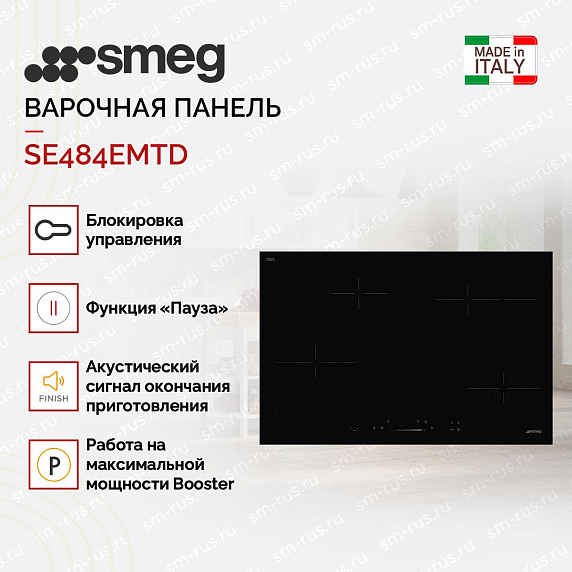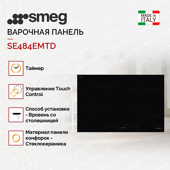Варочная панель SMEG SE484EMTD — это итальянская бытовая техника, которая сочетает в себе элегантность, функциональность и прочность. Изготовленная из стеклокерамики, она обладает уникальным дизайном с прямыми краями, что придает ей современный и стильный вид. Черный цвет панели добавляет изысканности и легко вписывается в любой интерьер.