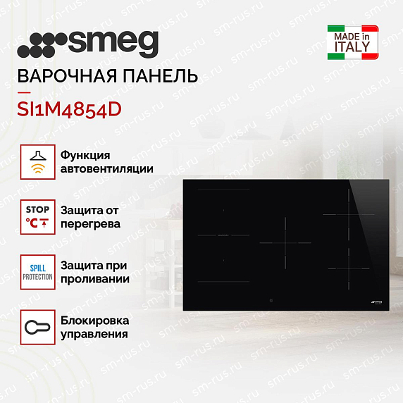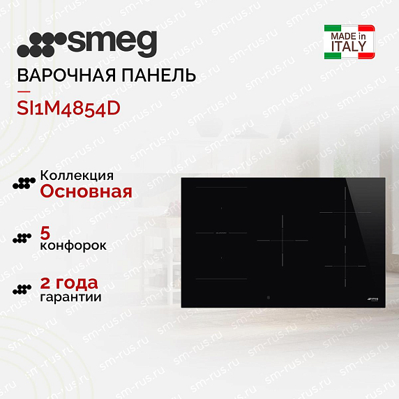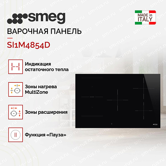 Варочная панель SMEG SI1M4854D имеет 5 конфорок, они оснащены функцией Booster с помощью нее можно увеличить мощность нагрева и вы будете готовить намного быстрее к примеру вскипятить воду за считанные минуты. Система Multizone объединяет конфорки в одну для возможности приготовления в нестандартной посуде. Опция пауза приостанавливает процесс приготовления, после повторного нажатия возобновляет его.