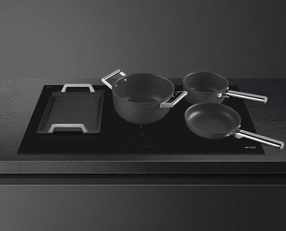 Функция Auto-Vent — это инновационная технология от Smeg. Технология автоматически регулирует скорость работы вытяжки в зависимости от температуры приготовления и настроек мощности на варочной панели.