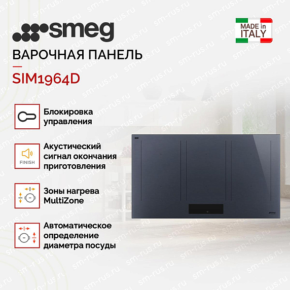 Варочная панель Smeg SIM1964D — это флагманская индукционная техника из коллекции Linea, созданная для просторных кухонь, где дизайн и производительность имеют равное значение. Модель выделяется эксклюзивным оттенком стекла Neptune Grey (серый Нептун), который придает интерьеру глубину и благородство, выгодно отличаясь от стандартных черных решений.
