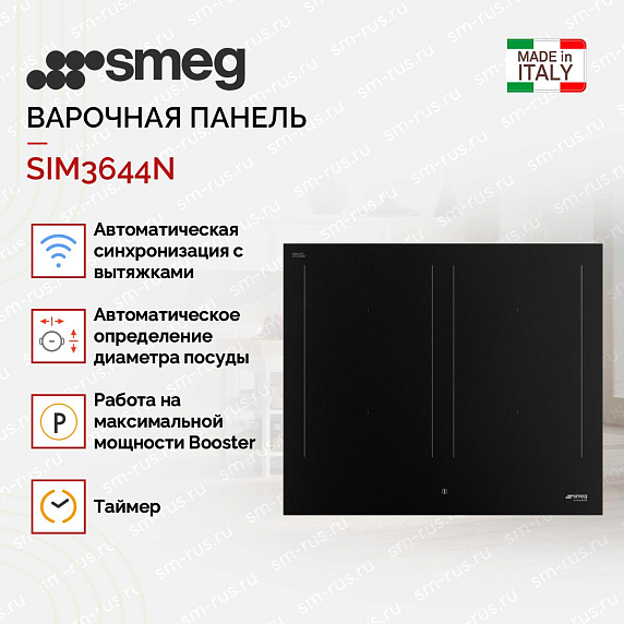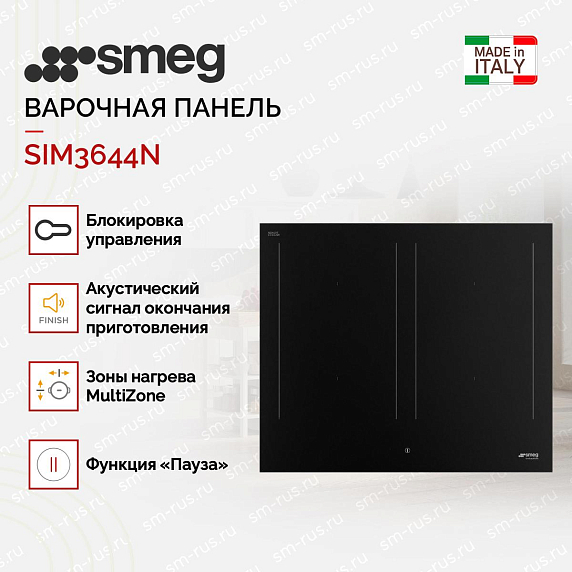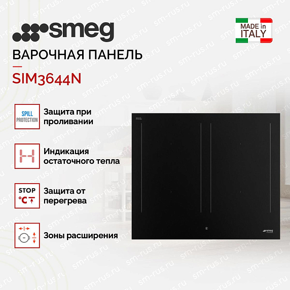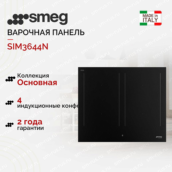 Варочная панель Smeg SIM3644N сочетает классическую элегантность коллекции Classica с современными технологиями: чёрная стеклокерамическая поверхность и прямой край формируют аккуратный, минималистичный профиль, который легко интегрируется в интерьер. Конструкция выполнена в Италии и рассчитана на встраивание вровень со столешницей, при этом габариты 60×51×5.3 см и требуемая ниша 55.5×47.8 см допускают установку в большинстве кухонных модулей.