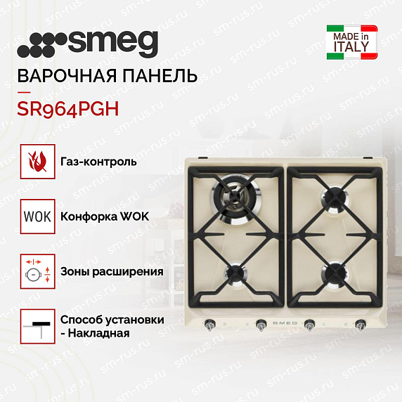 Варочная панель Smeg SR964PGH — классическая модель с элегантным внешним видом, долговечная, надежная и практичная