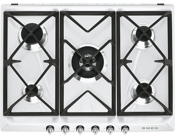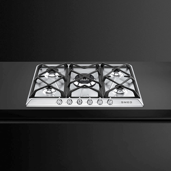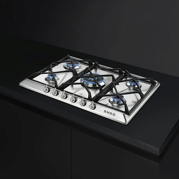 Варочная панель Smeg SR975BGH оборудована пятью газовыми горелками с автоматическим электроподжигом. Модель поддерживает технологию защиты от топливной утечки, что гарантирует безопасность эксплуатации. Для удобства размещения посуды предусмотрены высокопрочные чугунные решетки.