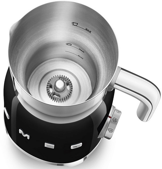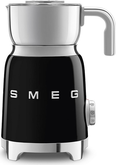 Вспениватель молока Smeg MFF01BLEU из коллекции «Стиль 50-х годов» выполнен в черном цвете. Модель оснащена удобным управлением, при помощи которого можно быстро выбрать нужный режим, например — «Горячий шоколад». Корпус из нержавеющей стали гарантирует долговечность использования.
