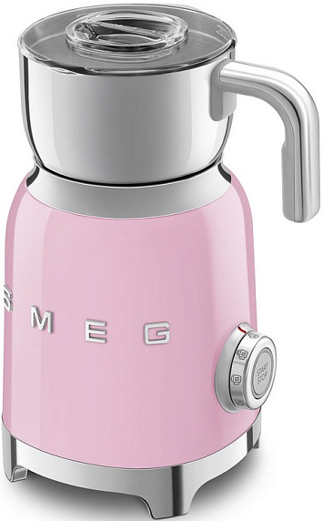 Вспениватель молока Smeg MFF01PKEU из серии «Стиль 50-х годов» выполнен в нежном розовом цвете. Удобное управление позволяет быстро выбрать нужную программу. Для начала приготовления достаточно нажать на кнопку «Старт», а об завершении цикла уведомит звуковой сигнал. Корпус и кувшин из нержавеющей стали обеспечивают долговечность использования устройства.