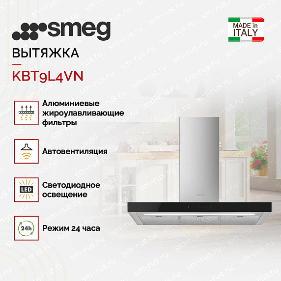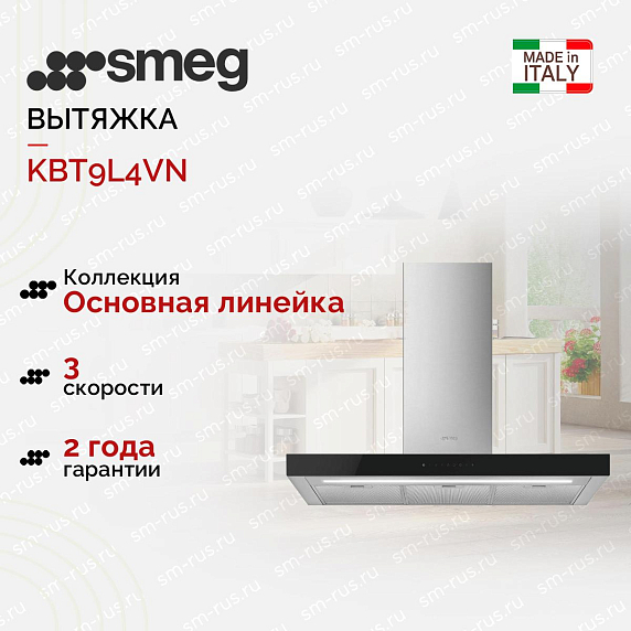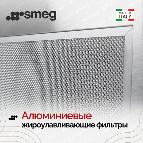 Вытяжка Smeg KBT9L4VN оснащена 3 скоростями работы, также имеется интенсивный режим. Устройство оснащено сенсорным управлением, на дисплее удобно расположены функции. Имеется индикатор, который оповестит вас о загрязненности фильтра.