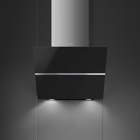 Вытяжка Smeg KCV60NE2 настенного монтажа представлена в цвете «черное стекло». Мощность аспирации регулируется на трех уровнях, кроме того, есть предусмотрен интенсивный режим. Сенсорные переключатели Touch Control расположены с фронтальной стороны корпуса для удобства управления. Периметральное всасывание воздуха гарантирует наилучший результат приготовления.= различных блюд.