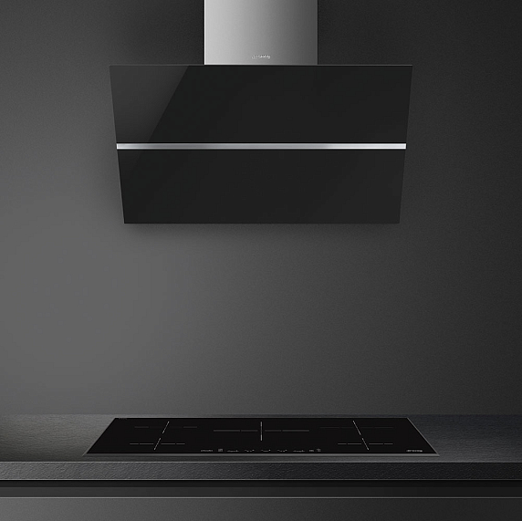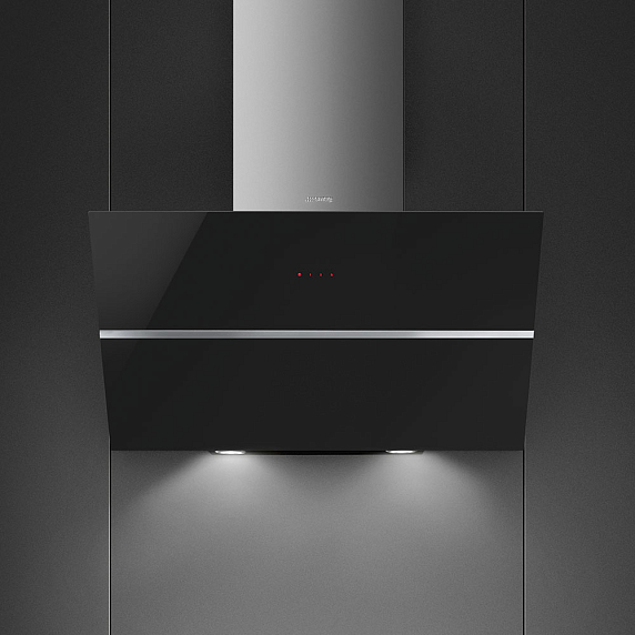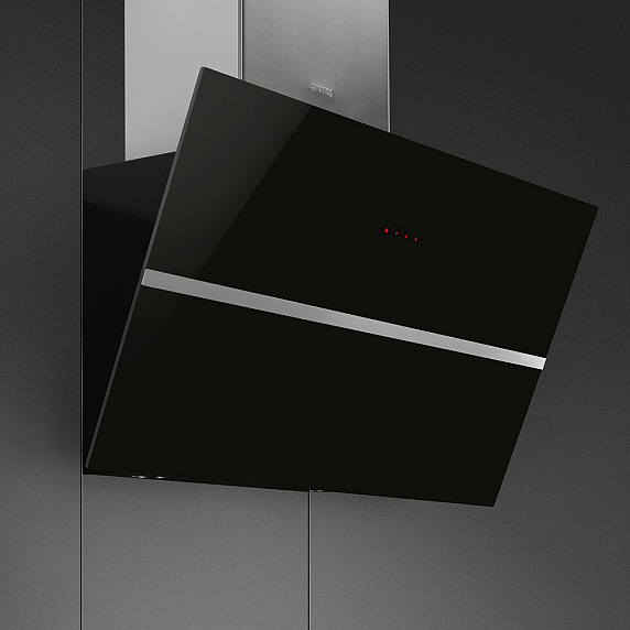 Настенная вытяжка Smeg KCV80NE2 работает в режимах отвода и рециркуляции воздуха. Фронта из черного закаленного стекло органично дополнен коробом из нержавеющей стали. Светодиодные лампы равномерно освещают рабочую поверхность. 3 уровня мощности регулируются при помощи сенсорных переключателей Touch Control.