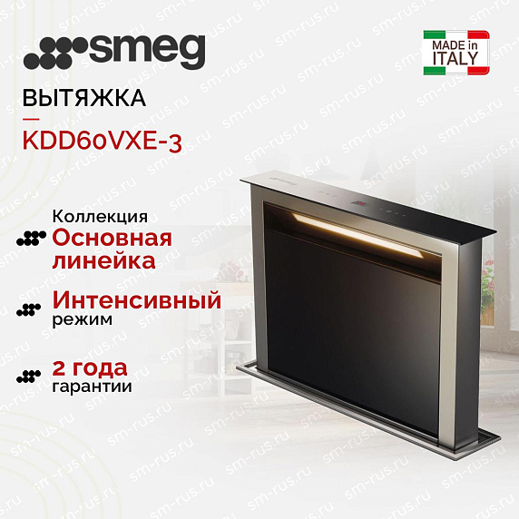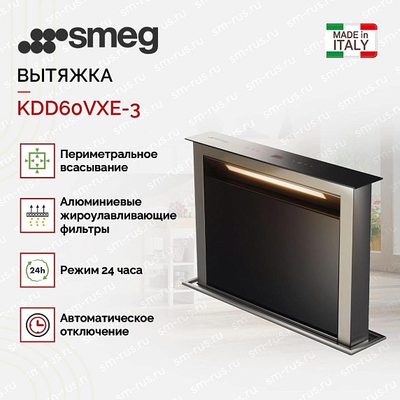 Вытяжка Smeg KDD60VXE-3 — это продукт итальянского производителя, известного своими высококачественными кухонными приборами. Этот аппарат представлен в основной линейке компании и обладает рядом преимуществ. Устройство имеет элегантный дизайн, сочетающий черное стекло и нержавеющую сталь, что делает его стильным дополнением к любому интерьеру кухни. Один из ключевых аспектов этого устройства — его встраиваемый тип. Это означает, что оно устанавливается непосредственно в столешницу, что позволяет сэкономить пространство и создает эстетически приятный вид.