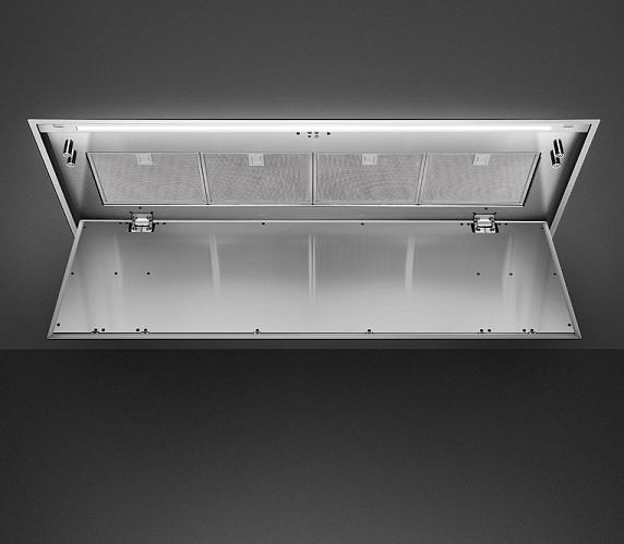 Как следует из названия, вытяжки данной конструкции всасывают воздух по всему периметру. Как правило, этого достаточно, чтобы не упустить исходящие от любой плиты, варочной панели или духовки запахи. Жироулавливающие фильтры работают наиболее эффективно именно в вытяжках с периметральным всасыванием, а сами приборы при этом издают меньше шума.