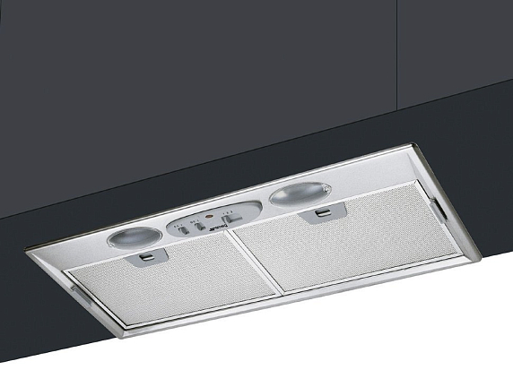 Встраиваемая в подвесной шкаф вытяжка выполнена в цвете матовая нержавеющая сталь и оснащена двумя галогеновыми лампами. Три скорости работы позволят подобрать нужный уровень очищения в зависимости от степени загрязнения. Алюминиевые жироулавливающие фильтры быстро и эффективно очистят воздух от неприятных запахов и частиц жира.