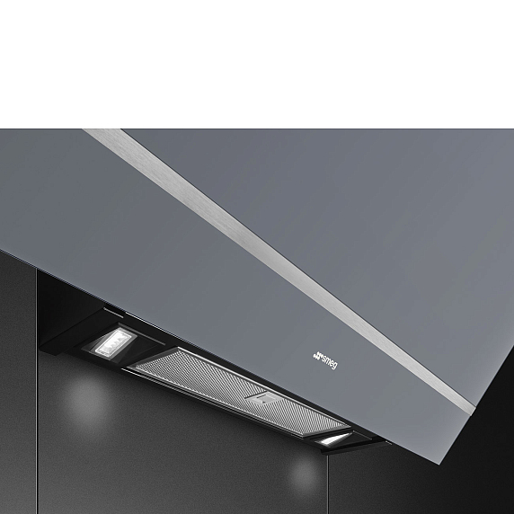 Вытяжка Smeg KV28S из коллекции Linea представлена в цвете «Серебристое стекло Stopsol». С помощью сенсорных элементов управления Touch Control можно удобно и быстро выбрать одну из трех скоростей в зависимости от степени загрязнения воздуха, а также включить подсветку или интенсивный режим. Индикация загрязнения угольного фильтра обеспечивает комфорт использования устройства.
